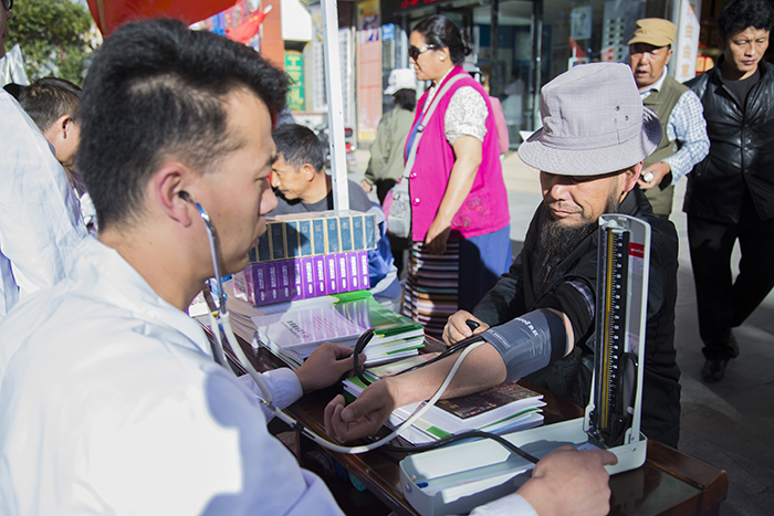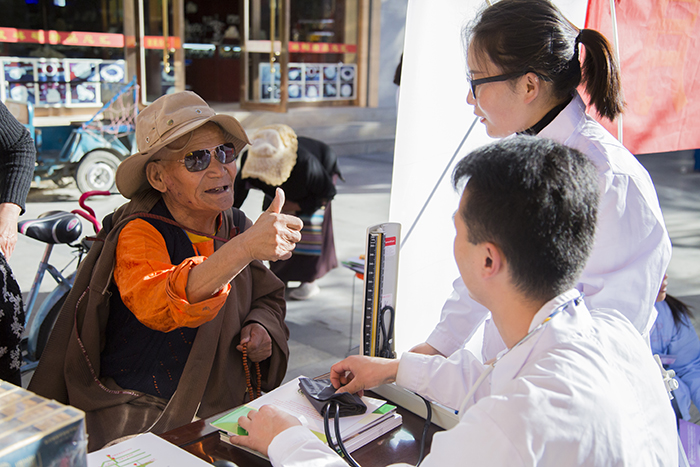 在活動(dòng)期間,前來阜康醫(yī)藥義診宣傳點(diǎn)的藏族同胞及社會(huì)群眾紛紛表達(dá)了自己對(duì)阜康醫(yī)藥全體員工的感謝,一位年齡較大的藏族老伯前來測量完血壓并咨詢了一些自己身體健康方面的問題之后,更是再三對(duì)阜康醫(yī)藥的醫(yī)護(hù)人員表達(dá)了謝意,并且毫不吝嗇贊美之情地對(duì)我們豎起了大拇指!西藏自治區(qū)德吉副主席等幾位領(lǐng)導(dǎo)在本次活動(dòng)巡查工作中,于阜康醫(yī)藥免費(fèi)義診宣傳點(diǎn)與我院醫(yī)護(hù)人員等進(jìn)行了交流,并再次表達(dá)了對(duì)阜康醫(yī)藥長期以來積極參與各項(xiàng)活動(dòng)、傾情奉獻(xiàn)社會(huì)民族、熱心回饋西藏百姓的誠摯的感謝。