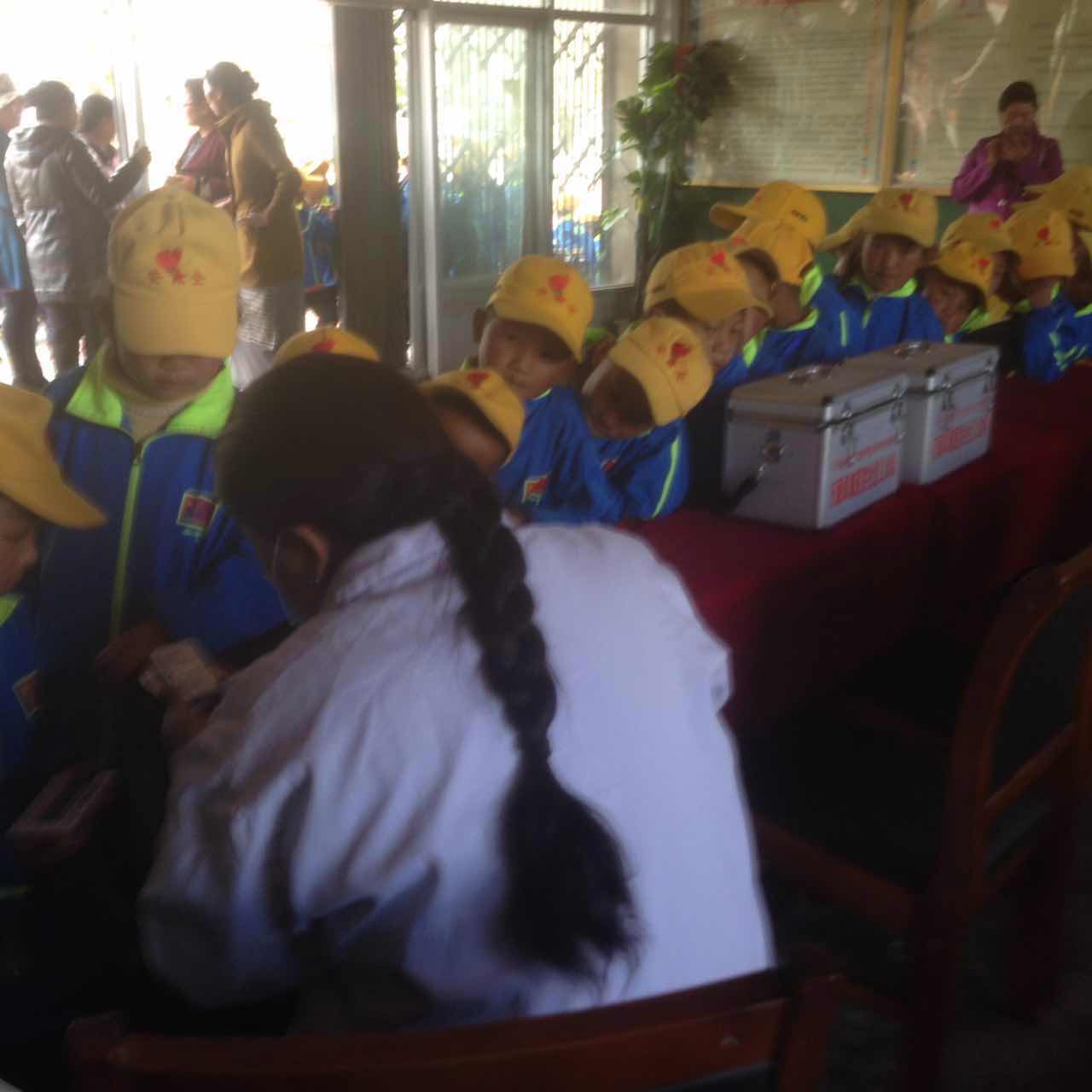 31日上午8點(diǎn)半左右,西藏阜康醫(yī)院社區(qū)義診隊(duì)兩名主要成員才仁、卓瑪次仁乘坐義診專(zhuān)用車(chē),載著價(jià)值25000元左右的藥品,從拉薩市區(qū)出發(fā)前往墨竹工卡縣甲瑪鄉(xiāng)中心小學(xué)。經(jīng)過(guò)1個(gè)小時(shí)40分鐘的顛簸路程,本報(bào)記者會(huì)同義診隊(duì)終于抵達(dá)目的地。盡管現(xiàn)場(chǎng)下起了小雨,但這始終沒(méi)有阻擋孩子們的熱情,甲瑪鄉(xiāng)中心小學(xué)的285名小學(xué)生正在學(xué)校教學(xué)樓前,耐心等待義診隊(duì)的到來(lái)。10點(diǎn)10分左右,孩子們?cè)诶蠋煹囊龑?dǎo)下依次接受體檢,醫(yī)生為他們檢查了口腔、腹腔、測(cè)量心跳,并發(fā)放了藥品。一個(gè)個(gè)溫馨友善的提醒,一盒盒充滿(mǎn)愛(ài)意的藥品,都讓孩子們感受著全社會(huì)的關(guān)愛(ài)。