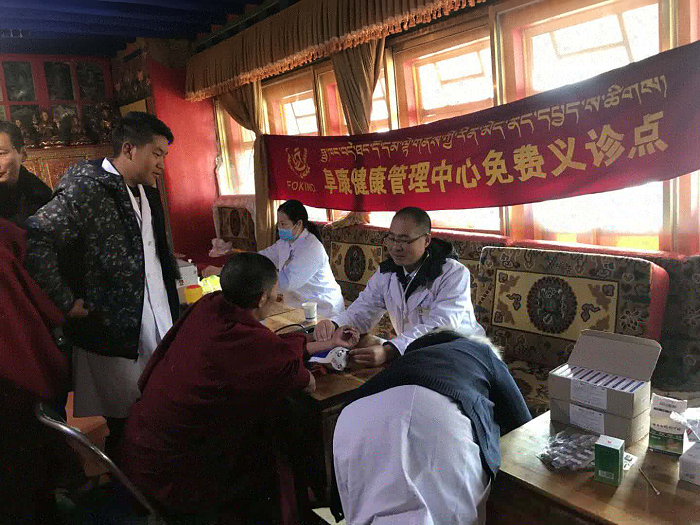 11月28日上午,西藏阜康醫(yī)院慢病管理中心義診分隊(duì)來(lái)到甘丹寺管理委員會(huì)。在文物資產(chǎn)處處長(zhǎng)羅布次仁的接待下,我院5名醫(yī)務(wù)人員走進(jìn)了甘丹寺,義診分隊(duì)此行帶著阜康人送醫(yī)送藥的暖心活動(dòng)、帶著“用知識(shí)和良知為人類健康服務(wù)”的宗旨、帶著阜康醫(yī)院幾千元的藥品,為全寺430名僧侶免費(fèi)測(cè)血壓、血糖、氧飽和度以及發(fā)放常見(jiàn)疾病的藥物。
