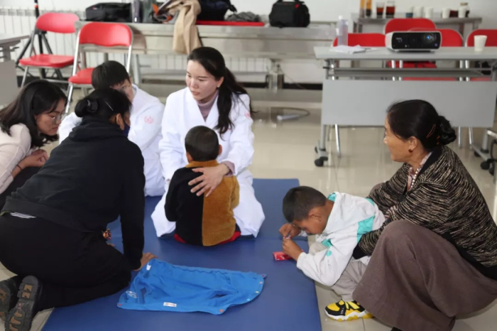 康復醫(yī)學科萬晨老師給孩子們做康復指導
