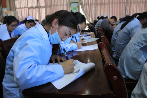 考場紀(jì)律異常嚴(yán)格,筆者也在阜康醫(yī)院婦產(chǎn)兒童分院參加了考試,員工分別以每行醫(yī)療、醫(yī)技、護理、行政交叉座次,醫(yī)療、醫(yī)技、護理、行政的考卷也各不相同。現(xiàn)場由敖德秀副院長、李君副院長、劉連福副院長監(jiān)考。考試題目并不難,只要認真背誦應(yīng)知應(yīng)會手冊都是能夠輕松應(yīng)答的。但是,好多同事并沒有認真學(xué)習(xí)應(yīng)知應(yīng)會手冊,考試現(xiàn)場抓頭發(fā)的抓頭發(fā),咬筆桿的咬筆桿,各個凝神屏息經(jīng)蹙眉頭,現(xiàn)場氣氛很是緊張。