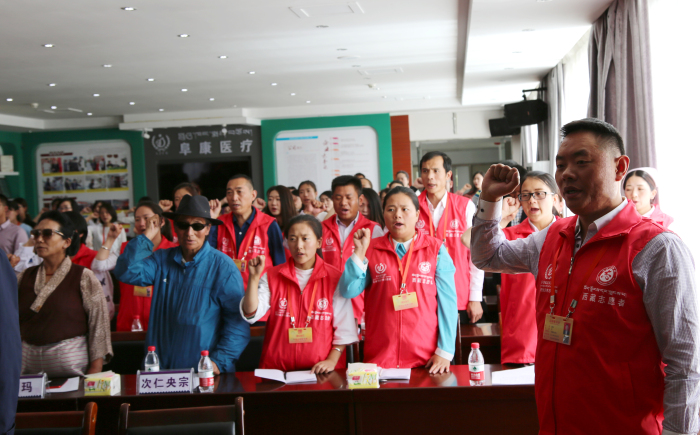 8月7日下午,西藏阜康醫(yī)療股份有限公司舉辦了阜康雪域天使志愿者服務(wù)隊(duì)活動啟動儀式暨首輪培訓(xùn)大會,參加本次會議的有西藏志愿聯(lián)合服務(wù)會副秘書長、3名阜康公司行風(fēng)監(jiān)督員(西藏自治區(qū)工商聯(lián)非公黨工委辦公室副主任郭海亮、那曲金沙公司副經(jīng)理次仁央宗、西藏卓瑪愛心家園實(shí)業(yè)有限公司董事長卓瑪),“阜康雪域天使志愿者服務(wù)隊(duì)”隊(duì)長王斌以及阜康醫(yī)院院領(lǐng)導(dǎo)、全體志愿者。會議由阜康雪域天使志愿者服務(wù)隊(duì)副隊(duì)長陳彬主持。