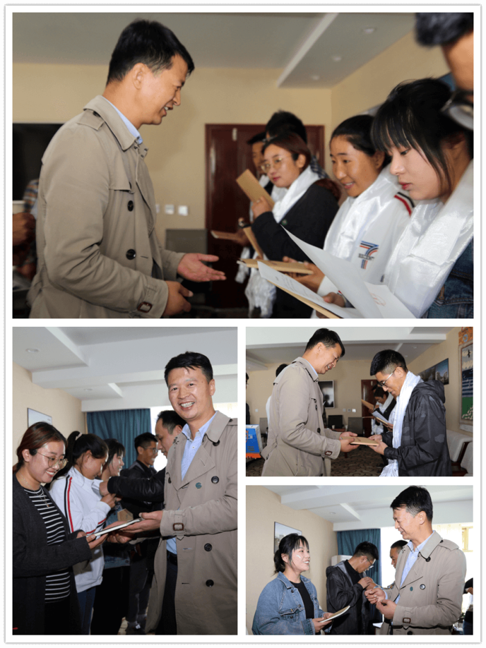 隨后,王斌董事長向7名規(guī)培生門頒發(fā)了《阜康員工守則》,并敬獻了潔白的哈達,佩戴了阜康院徽,他臨別叮囑:“謹(jǐn)記阜康囑托,謹(jǐn)守阜康準(zhǔn)則,不辱阜康之名,為阜康爭榮!希望你們能夠腳踏實地在華西醫(yī)院和成都市第三人民醫(yī)院帶教老師的指導(dǎo)下完成規(guī)培計劃,并在三年內(nèi)考過執(zhí)業(yè)醫(yī)師資格證和規(guī)范化培訓(xùn)資格證,按時歸來服務(wù)阜康、報效西藏!”