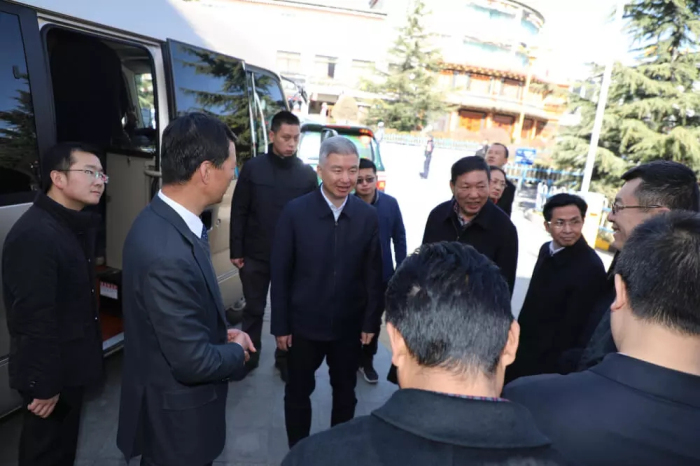 西藏阜康醫(yī)療股份有限公司黨委書記、董事長(zhǎng)王斌率全院院級(jí)領(lǐng)導(dǎo)陪同西藏自治區(qū)黨委副書記、政府常務(wù)副主席莊嚴(yán)一行進(jìn)行調(diào)研