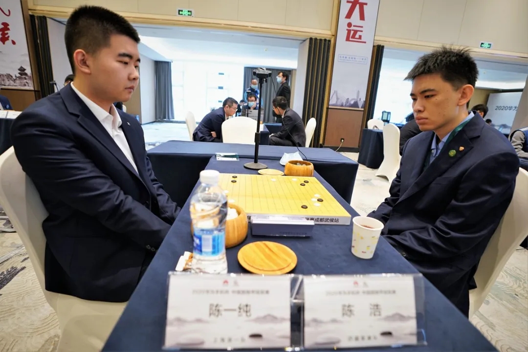一臺比賽由西藏阜康隊陳浩對陣上海清一隊陳一純,兩名小將下的十分仔細,最終陳浩不敵陳一純。