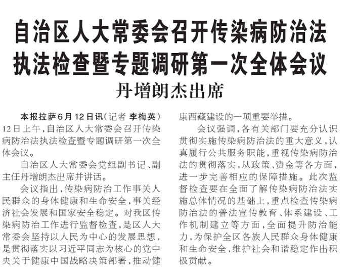 - · 自治區(qū)人大常委會(huì)召開傳染病防治法 執(zhí)法檢查暨專題調(diào)研第一次全體會(huì)議——丹增朗杰出席