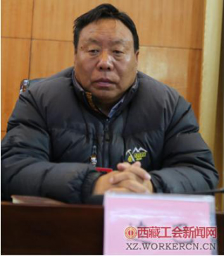 區(qū)總工會黨組成員、巡視員邊巴次仁宣讀《西藏自治區(qū)總工會關(guān)于對2016年全區(qū)實施工資集體協(xié)商提質(zhì)增效“2345”工程示范企業(yè)、規(guī)范企業(yè)授牌的決定》