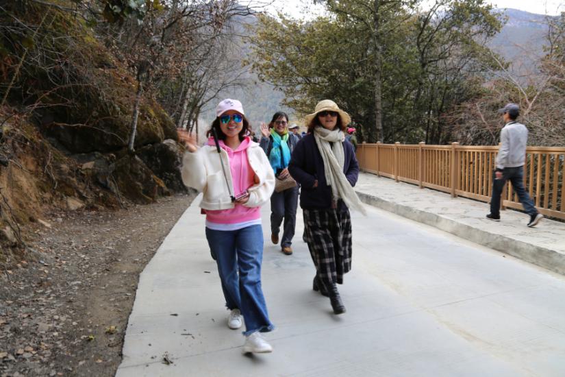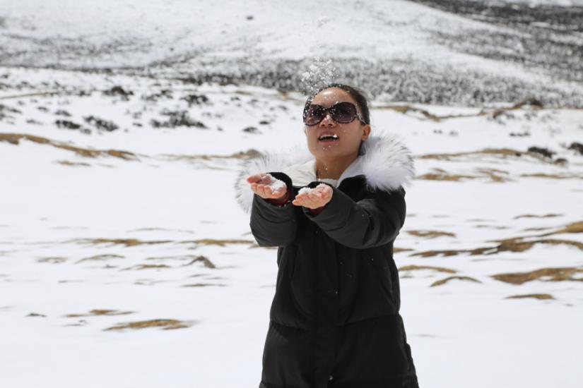下午全體成員抵達(dá)巴松措、卡定溝景區(qū),在景區(qū)舉行了徒步活動(dòng),活動(dòng)開始大家還能步調(diào)一致,不少員工在徒步活動(dòng)開展的同時(shí)還進(jìn)行自我“活動(dòng)”,有自拍的也有三五成群拍照的,似乎大家都想要把大自然饋贈(zèng)的美景留住。伴隨著路程增加,高原氣候復(fù)雜多變,部分隊(duì)員體力不支的情況逐漸體現(xiàn)出來,發(fā)現(xiàn)有掉隊(duì)的隊(duì)員,大家就會(huì)上前攙扶、互相鼓勵(lì)、重振旗鼓再次踏上路途,最終全體人員一起到達(dá)終點(diǎn)。