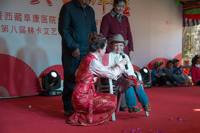 據(jù)了解,塔巴次仁因不幸患有腦癱疾病而一直不能下地走路,只能依靠輪椅出行,但自十余日前在我院針灸理療科接受相應(yīng)治療至今,塔巴次仁的病情獲得明顯好轉(zhuǎn),現(xiàn)已可以開始嘗試離開輪椅自己走路;為了表達(dá)自己與親人對(duì)阜康全體醫(yī)護(hù)人員的感謝,不會(huì)漢語(yǔ)的塔巴次仁堅(jiān)持學(xué)習(xí)并在林卡演出現(xiàn)場(chǎng)為大家演唱了一首《感恩的心》。塔巴次仁的康復(fù),無(wú)疑是一個(gè)令大家喜悅的好消息,我們共同祝愿他能盡早的徹底離開輪椅,能像正常人一樣,可以用自己的雙腳去到任何一個(gè)自己想去的地方!