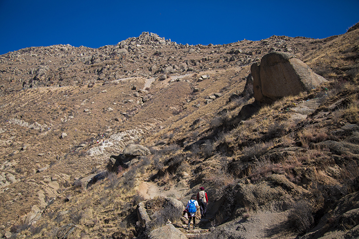 按照既定路線,我們沿著色拉寺的轉(zhuǎn)經(jīng)道到達(dá)了后山,開始向我們的第一個目標(biāo)——色拉烏茲進(jìn)發(fā)。