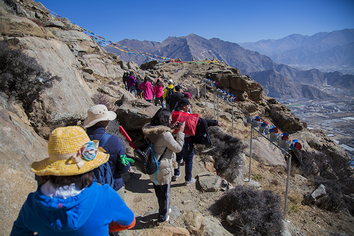 為保證參加活動人員的人身安全,支部對參加人員著裝、隨身攜帶物品等做出了明確規(guī)定,所有人從阜康婦產(chǎn)兒童分院集合統(tǒng)一出發(fā)驅(qū)車前往色拉寺。我們將人員分為三隊(duì),為保證體力給大家發(fā)放了水果、水、巧克力等,同時還給帶隊(duì)的小組長分發(fā)了垃圾袋,鑒于西藏脆弱的生態(tài)環(huán)境,為保護(hù)大山環(huán)境,我們要求所有人員把爬山過程中產(chǎn)生的垃圾,和以前轉(zhuǎn)山者遺留下的垃圾一并帶走,為環(huán)境保護(hù)貢獻(xiàn)自己微小的力量。