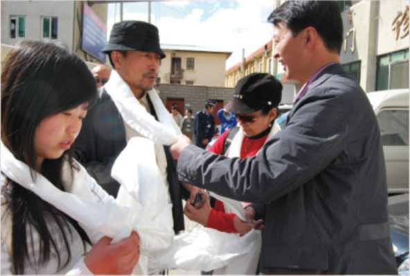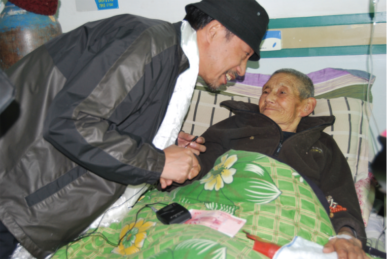 這次感恩之旅最艱難的地方就是大家對(duì)西藏高原氣候的極度不適應(yīng)。果然, 到達(dá)了西藏后,孫海英就發(fā)生了嚴(yán)重的高原反應(yīng), 身體虛弱到了極點(diǎn)。同行的工作人員為了防止意外,一度打算取消這次探訪。但孫海英請(qǐng)求大家稍等自己一會(huì)。半個(gè)小時(shí)后,經(jīng)過簡(jiǎn)單救治以后,盡管他的不適反應(yīng)并沒有完全消除,但孫海英仍然準(zhǔn)時(shí)出現(xiàn)在大家面前。