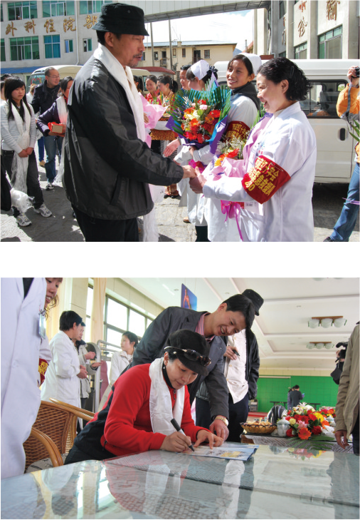 在大災(zāi)難面前,人與人之間的關(guān)愛超越了地域,超越了民族,超越了血緣。去年地震中受災(zāi)的田啟蘭和一支來自西藏的醫(yī)療隊(duì)一一阜康醫(yī)院醫(yī)療救援隊(duì)的醫(yī)護(hù)人員結(jié)下了深厚的感情。汶川大地震發(fā)生后的第二天,阜康醫(yī)院醫(yī)療救援隊(duì)以最快的速度到達(dá)四川展開救援,每天救治的病人超過500人,先后為.上萬人進(jìn)行了醫(yī)治,為2500多人挽留了寶貴的生命!在救援過程中,這支西藏醫(yī)療救援隊(duì)接收到了一位已經(jīng)奄奄一息的婦女一一田啟蘭。她在地震中,與女兒、丈夫等親人都失去了聯(lián)系,精神瀕臨崩潰邊緣的田啟蘭拒絕任何進(jìn)食,并表現(xiàn)出自殺的傾向。藏族醫(yī)護(hù)人員索珍用沾滿葡萄糖水的棉簽, 不停地擦拭她的嘴唇,并陪同她談心一天一夜,直至她解開心結(jié),同意配合醫(yī)生接受治療。