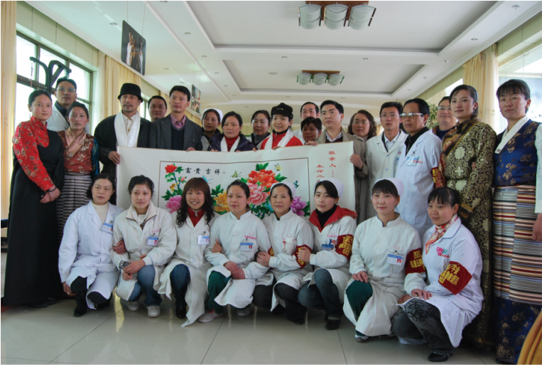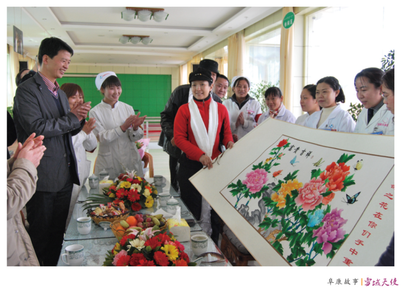 此次的西藏之行,田啟蘭專門代表綿竹人民準(zhǔn)備了一副《富貴吉祥》手工刺繡圖,表達(dá)災(zāi)區(qū)群眾的感激之情。這幅刺繡是田啟蘭和幾名繡女不分晝夜趕制出的。對(duì)于田啟蘭來說,這不僅是一次感恩之旅,更是去探望自己“家人”的溫馨之旅。 而孫海英呂麗萍夫婦了解到,阜康醫(yī)院醫(yī)療救援隊(duì)醫(yī)療一直在免費(fèi)收治有困難的患者。在探訪時(shí),有一位70多歲的老人就正在接受治療,所有的費(fèi)用都是該公司董事長(zhǎng)一個(gè)人承擔(dān)。得知這個(gè)情況后, 孫海英夫婦當(dāng)即掏出自己隨身攜帶的全部3000多元現(xiàn)金捐獻(xiàn)出來。在了解索珍有身孕在身,孫海英夫婦和田啟蘭又一起買了禮物去看望這位白衣天使。