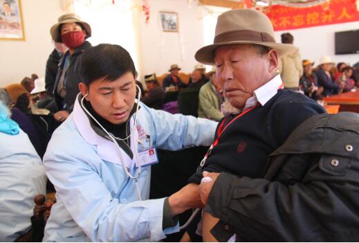 下午,我們又來到墨竹工卡縣扎西崗鄉(xiāng)敬老院,對老人進(jìn)行義診。當(dāng)天,我們一共對300位老人進(jìn)行了免費(fèi)體檢,發(fā)放了價(jià)值10000余元的藥品。