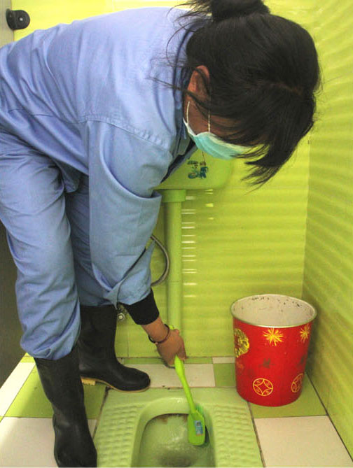 保潔工作十分繁瑣:前面剛拖了地,后面就被踩臟了;剛把垃返裝換上,病人就將飯菜倒了進(jìn)去;擦過的樓梯扶手,被小孩子抹上了鼻涕;潔凈的樓梯道被食堂送飯的小妹倒上了油水;干凈的長椅被住院病人陪護(hù)的雙腳蹭上了泥……