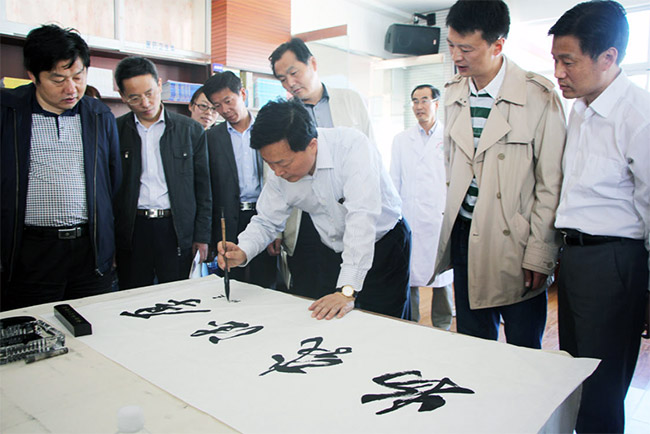 6月16日上午9:00,合肥市和安徽省建藏援藏工作者協(xié)會領(lǐng)導(dǎo)分別參觀了西藏阜康醫(yī)院心腦血管分院、西藏阜康(國際)健康體檢中心以及阜康婦產(chǎn)兒童醫(yī)院,并在阜康婦產(chǎn)兒童醫(yī)院四樓會議室舉辦合肥之友及西藏書畫家筆會。會上兩地的書法家揮毫潑墨,以文會友。