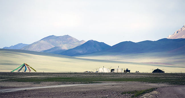 家鄉(xiāng)的9月,酷暑還沒消退,而當(dāng)我從拉薩乘車到達(dá)措勤境內(nèi)時(shí),這里卻下起了鵝毛般的大雪。車?yán)锼腥硕急凰緳C(jī)喊下了車,在雪地里推這不中用的大“鐵皮”。初次見到如此美妙的雪景,我挺激動,并沒因?yàn)樵愀獾穆窙r而苦悶。還好,雪并沒有下太久,汽車又奔馳在廣闊草原上,前方是望不盡的天際和地平線到達(dá)改則縣城,如同到達(dá)歐洲中世紀(jì)的小城。土墻,矮窗,牧民家的煙囪和那裊裊的青煙構(gòu)就著荒原中詩般的生活氣息。“大漠孤煙直,長河落日圓”的邊塞景象真實(shí)地展現(xiàn)在眼前。當(dāng)然,改則縣長河是沒有的,在我印象里最深刻的是這三種事物:太陽、烏鴉和荒原。太陽永不懈怠,每天都從天邊升起然后落下;成群烏鴉粗劣嘶啞的叫聲給了荒原更加凄切的靜謐——呱、呱;而荒原,是太陽和烏鴉永恒的載體,不離不棄。