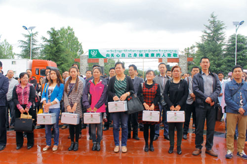西藏阜康(國(guó)際)健康體檢中心王斌董事長(zhǎng)首先向?yàn)榇龠M(jìn)西藏和諧發(fā)展長(zhǎng)期駐村(居)的工作人員表示崇高的敬意!據(jù)了解,本次為拉薩市267個(gè)駐村(居)工作隊(duì)贈(zèng)送的小藥箱中配備了急救類(lèi)、解熱鎮(zhèn)痛類(lèi)、治感冒類(lèi)、止咳化痰類(lèi)、抗菌藥物類(lèi)等14類(lèi)共31種常用藥品及電子血壓計(jì),總價(jià)值約20萬(wàn)元。王斌董事長(zhǎng)在贈(zèng)送儀式上講到“本次開(kāi)展西藏阜康(國(guó)際)健康體檢中心向駐村(居)工作隊(duì)贈(zèng)送藥箱活動(dòng),旨在為民解困難,為民辦實(shí)事,為我們駐村(居)工作人員健康做好堅(jiān)實(shí)的后盾,促進(jìn)西藏穩(wěn)定和諧發(fā)展。”王斌董事長(zhǎng)希望能給駐村(居)工作人員帶來(lái)健康,同時(shí)也希望能在黨的群眾路線(xiàn)教育實(shí)踐活動(dòng)中獻(xiàn)出民營(yíng)企業(yè)的一份綿薄之力。