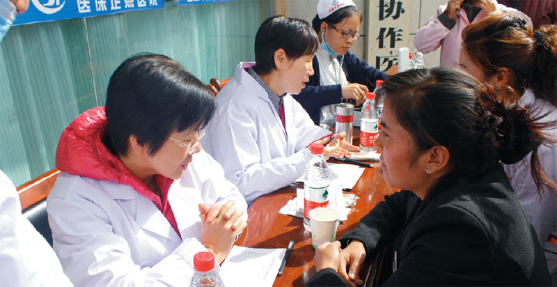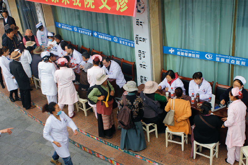 2014年9月29日,8位來自內(nèi)地各大醫(yī)院的專家在娘熱路阜康醫(yī)院門口為市民義診。阜康醫(yī)院業(yè)務(wù)副院長張治說:“原本有14位專家來參加義診,可是因為幾位有高原反應(yīng),最后只有這8位老師來到現(xiàn)場。”