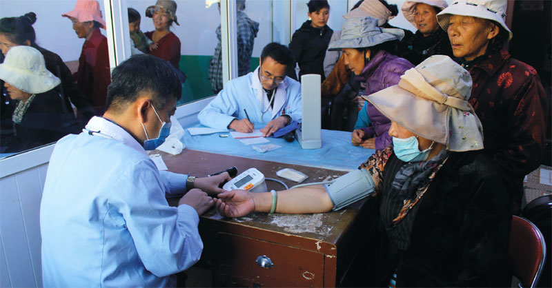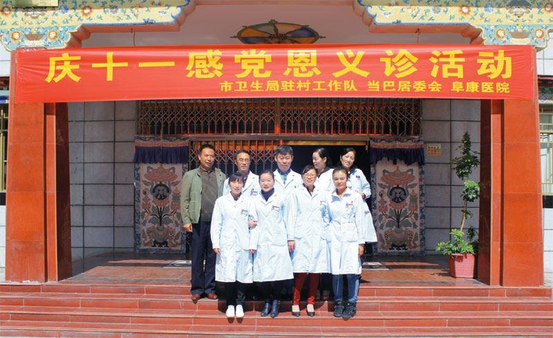為了更好地開展黨的群眾路線教育實(shí)踐,促進(jìn)醫(yī)患和諧,增強(qiáng)群眾健康意識。2014年9月29日上午10時,市衛(wèi)生局的駐村工作隊聯(lián)合西藏阜康醫(yī)院走進(jìn)當(dāng)巴鄉(xiāng),為當(dāng)?shù)鼐用耖_展“慶國慶 感黨恩”的大型義診活動。在與駐村工作隊溝通后,西藏阜康醫(yī)院組織了8名臨床經(jīng)驗(yàn)豐富的醫(yī)護(hù)人員參與本次義診,開展兒科、婦科、B超等檢查。