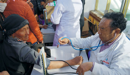 2015年3月13日,西藏自治區(qū)政協(xié)聯(lián)合西藏阜康醫(yī)院、西藏阜康醫(yī)院婦產(chǎn)兒童分院赴那曲羅馬鎮(zhèn)、古路鎮(zhèn)開展“送醫(yī)送藥,愛心義診”活動。免費(fèi)義診360余人,共計(jì)發(fā)放價(jià)值23000余元的常規(guī)藥品。