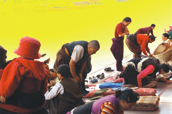 其實(shí)每年的這個(gè)時(shí)候,總有很多人會(huì)用身體行走,徒步千里,用心靈丈量這片廣袤的高原土地,用最虔誠(chéng)的姿勢(shì)拜倒在信仰之前,如此卑微,如此辛苦。只是,我看不懂他們。