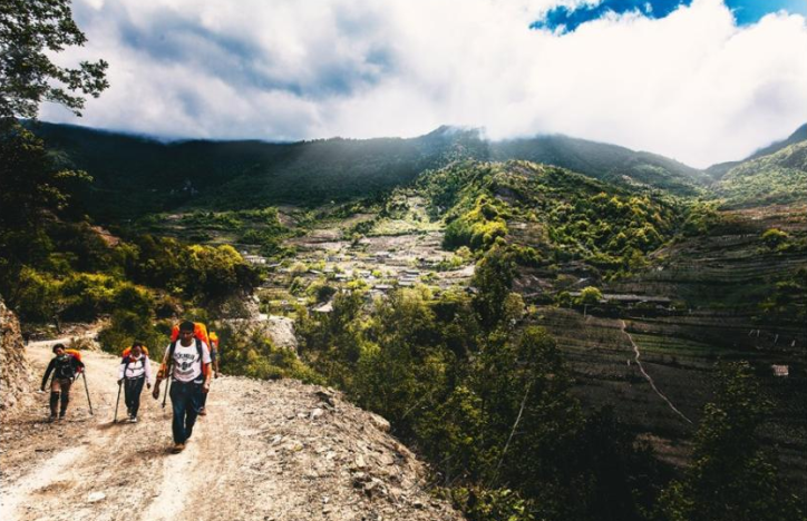 C幫著我裝睡袋的時(shí)候,我默然走下樓到洗澡室往腿上使勁纏裹塑料膜和膠帶。一切預(yù)備完畢,就等著住在益西那邊也是今天出發(fā)的兩位大哥。我們將四人一同走完最后的墨脫行程。那兩位大哥都是資深徒步者,-個(gè)是來(lái)自新疆,野外生存能力異常驚人,另一個(gè)算是半個(gè)重慶老鄉(xiāng),他媽媽是特種兵,所以至小就深受影響,熱愛(ài)徒步,走完了大半個(gè)中國(guó),已是第七次進(jìn)藏了。
