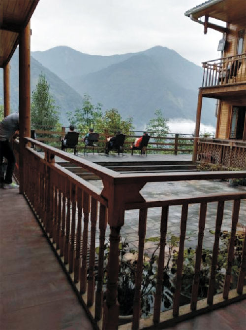 山窮水盡疑無路,柳暗花明又一村。幾個小時的奔波終于到達目的地,一個錯落有致的小村莊。大家歡聚一堂,大快朵頤,雖然廚師并不專業(yè),但勝在食材天然。酒足飯飽之后,大家沿著木梯下樓進行飯后娛樂。我坐在露天陽臺的藤椅上休息,一陣清風拂過,伴著竹林搖曳的聲音,剎那間居然有種“倚樓聽風雨,淡看江湖路”般微醺的感覺。